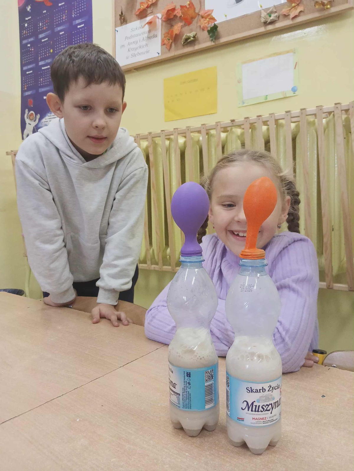 Już wiemy dlaczego chleb jest miękki i puszysty. Postawiliśmy trafną hipotezę - w czasie fermentacji ulatnia się gaz ( balon się nim wypełnił). Lubimy eksperymenty.