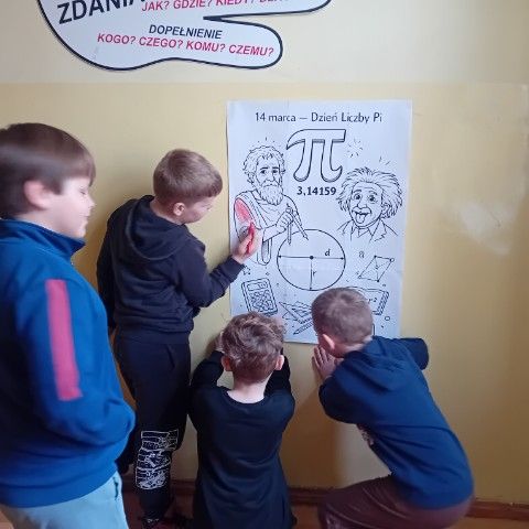 W tym roku już 13 marca nasi uczniowie obchodzili jej święto w ramach Dnia Matematyki. To doskonała okazja, aby przekonać się , że matematyka jest wszędzie. Uczniowie klas 4 - 8 mieli okazję spojrzeć na matematykę inaczej. Po zdobyciu informacji na temat liczby Pi rozwiązywali quiz, krzyżówkę, rebusy. Wcielili się w rolę tropicieli zagadek poznając tajniki szyfrowania. Poznali ciekawostki historyczne z Kryptologii - dziedziny spokrewnionej z matematyką zajmującą się metodami szyfrowania.