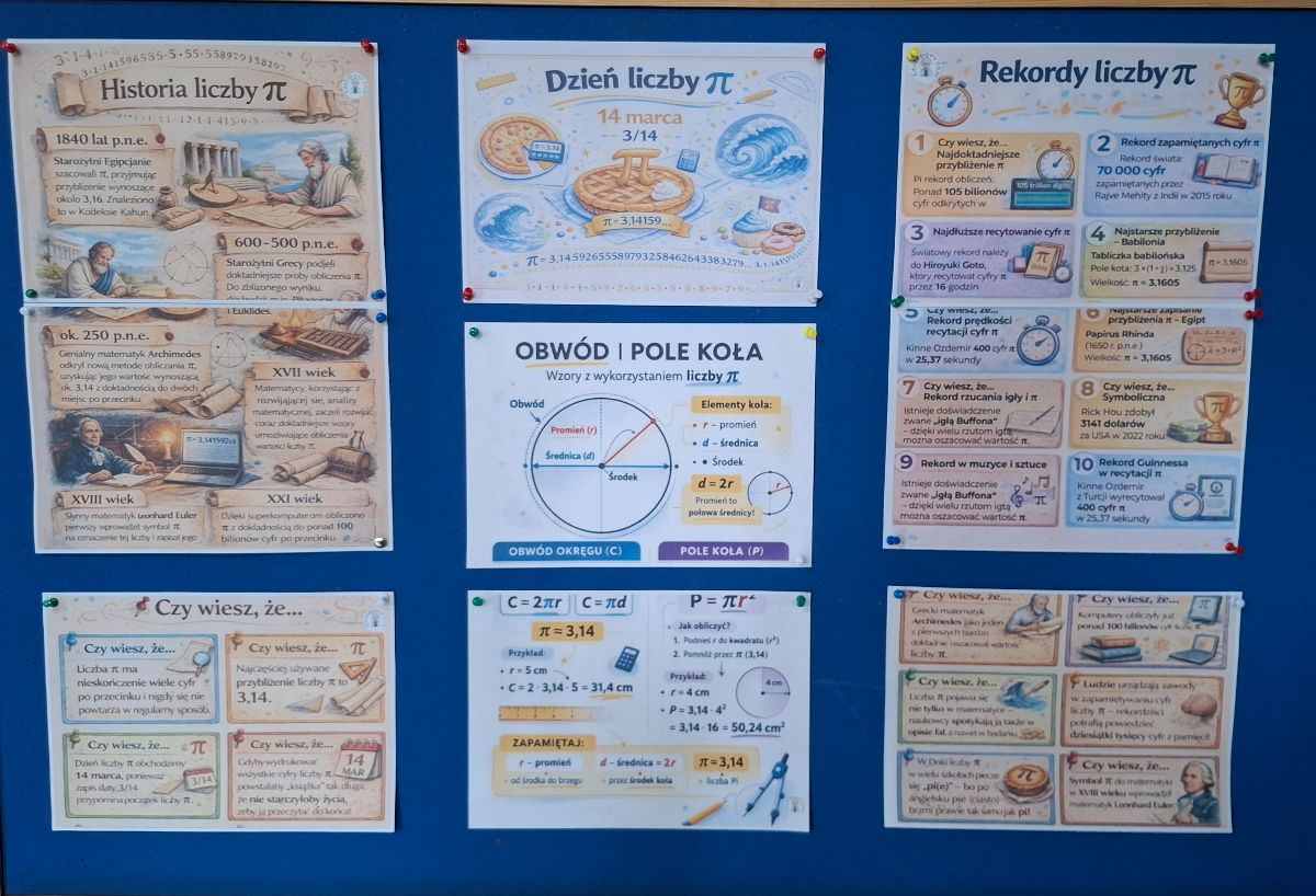 Uczniowie mogli zgłębić wiedzę na temat tej liczby. Poznać jej historię, ciekawostki na jej temat, rozwinięcie dziesiętne, sposoby na zapamiętanie cyfr po przecinku oraz zastosowanie liczby Pi w innych dziedzinach życia. Od 2019 roku święto liczby Pi jest świętem królowej nauk – matematyki.