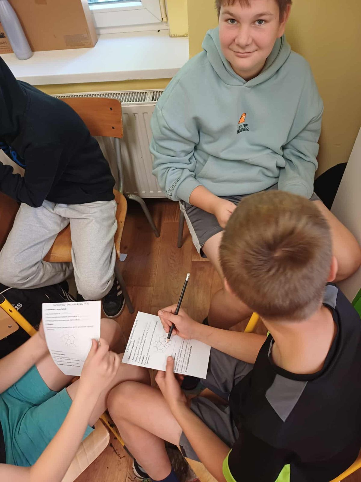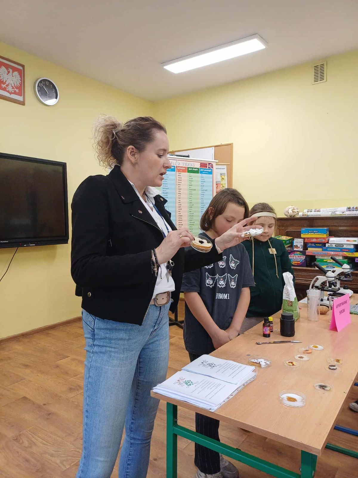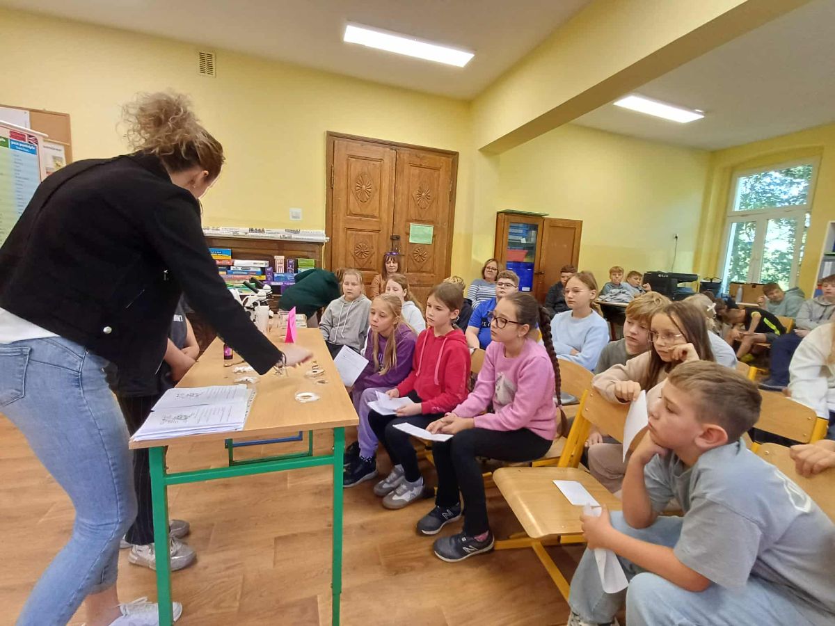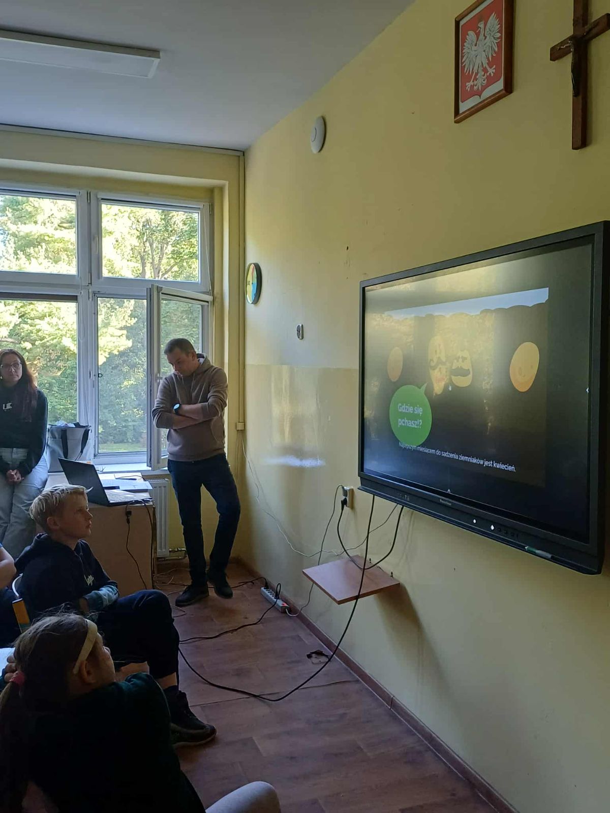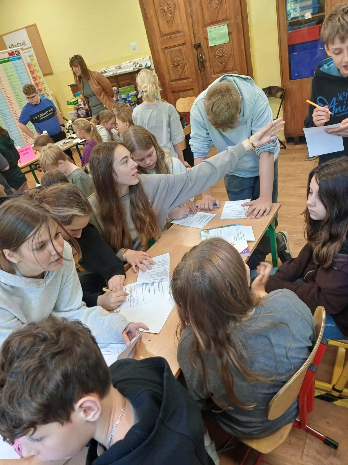 Klasy 4-8 miały okazję poznać historię ziemniaka oraz informacje związane z jego budową, cyklem wzrostu, zastosowaniem oraz aspektami geograficznymi jego uprawy. Obejrzeliśmy prezentację multimedialną i film, które dostarczyły nam sporej dawki wiedzy. Następnie wzięliśmy udział w warsztatach biologiczno-chemiczno-geograficznych, podczas których pracowaliśmy z mapą, wykrywaliśmy skrobię w różnych produktach oraz mogliśmy przygotować ziemniaczany preparat i obejrzeć go pod mikroskopem. Na zakończenie bawiliśmy się w uproszczonej formie escape roomu. Celem tej części dnia było zdobycie przepisu na placki ziemniaczane, czego dokonaliśmy poprzez rozwiązanie 5 zagadek logicznych, matematycznych i ortograficznych.