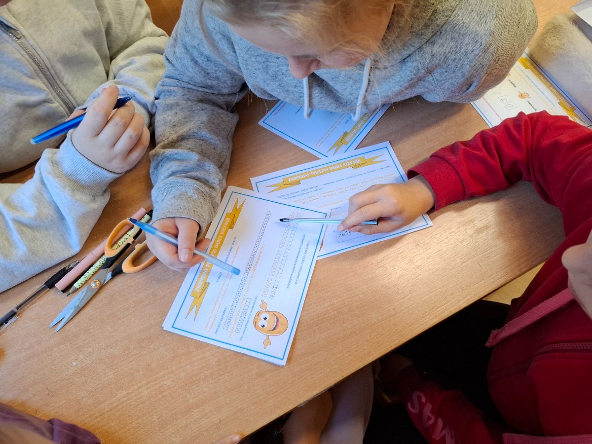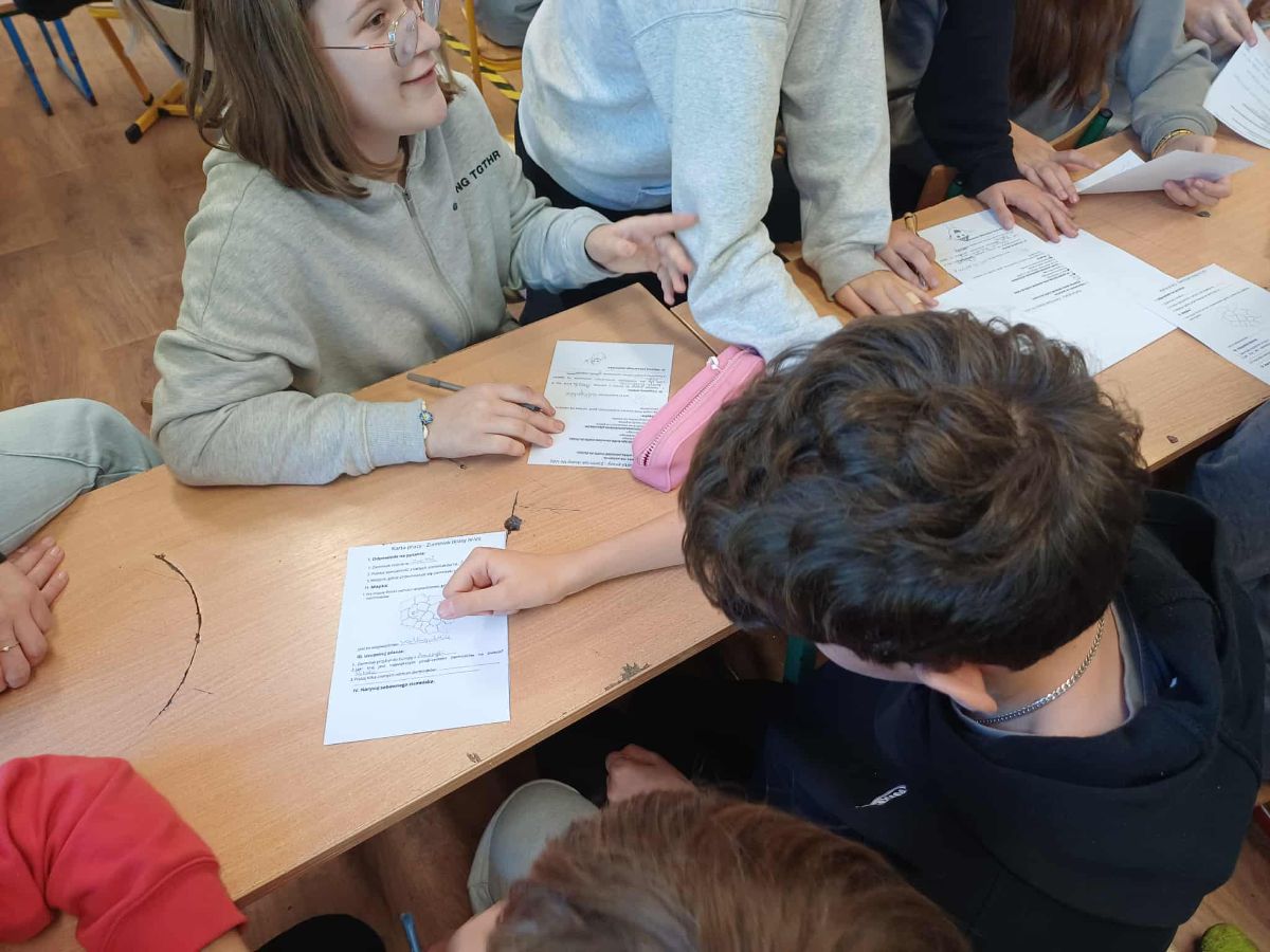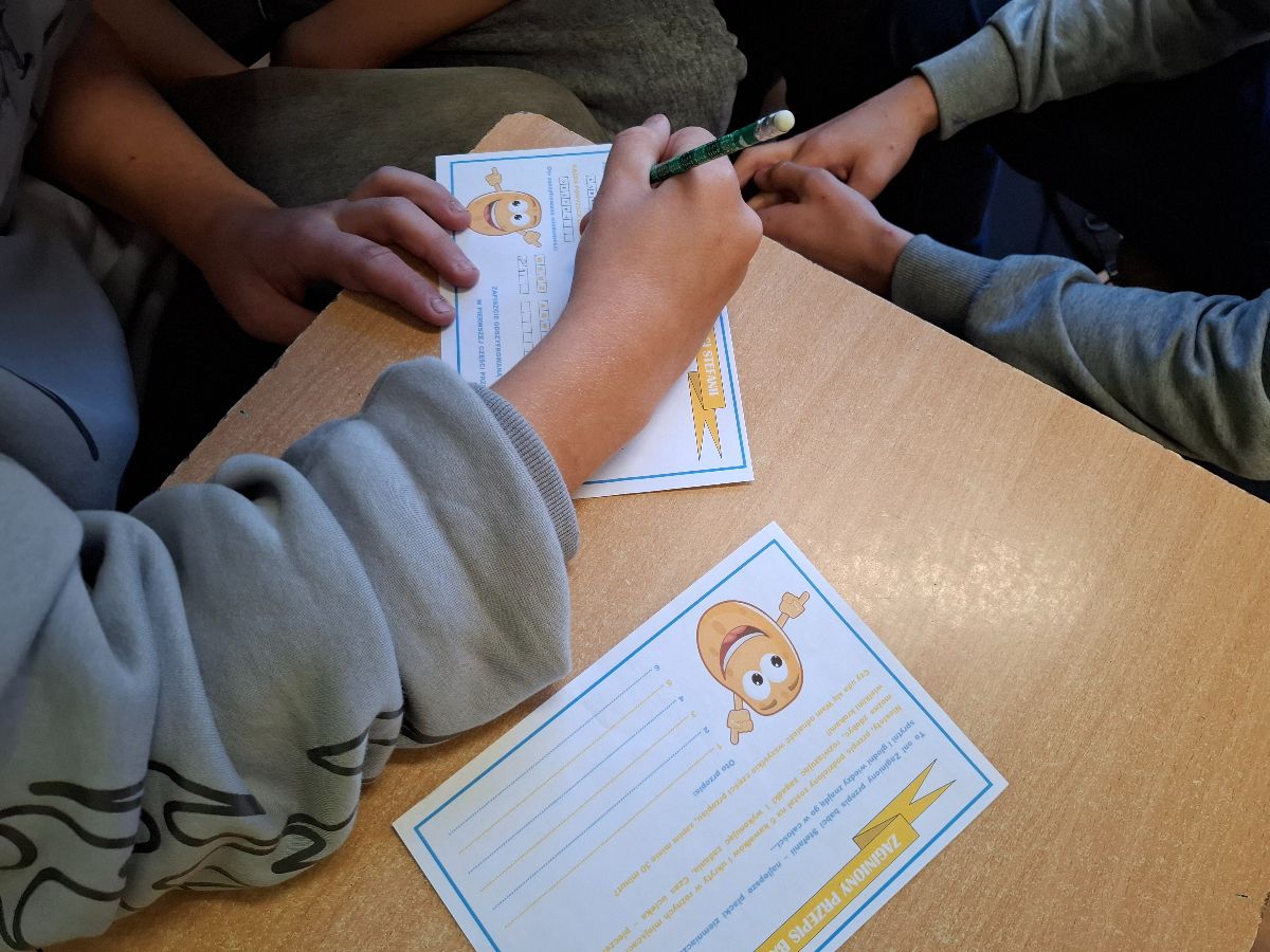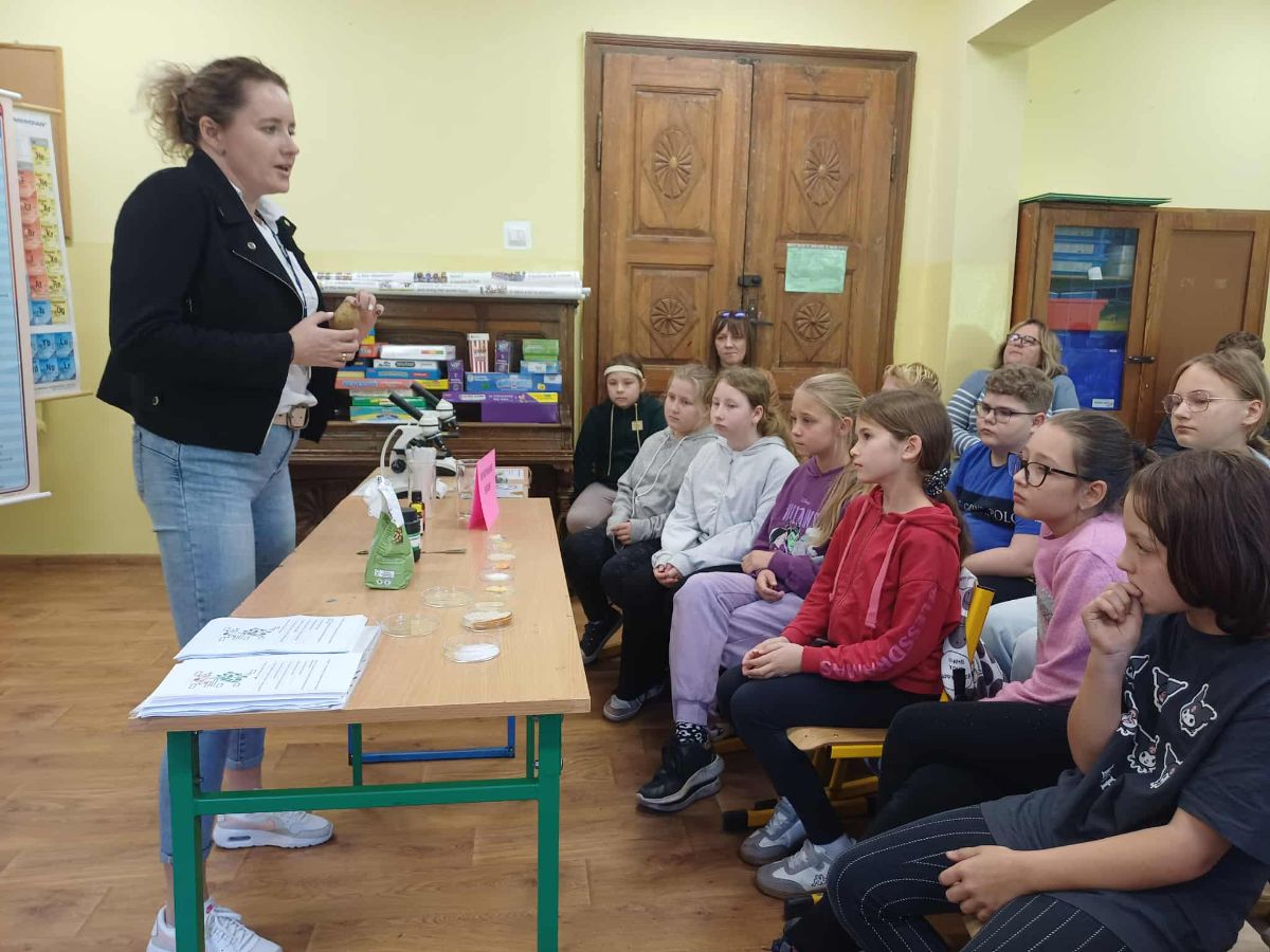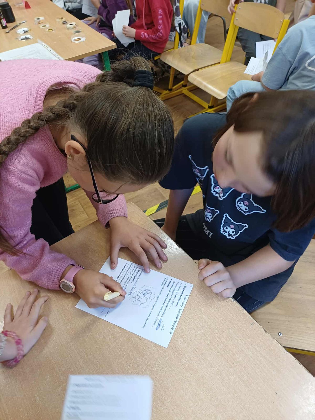 Klasy 4-8 miały okazję poznać historię ziemniaka oraz informacje związane z jego budową, cyklem wzrostu, zastosowaniem oraz aspektami geograficznymi jego uprawy. Obejrzeliśmy prezentację multimedialną i film, które dostarczyły nam sporej dawki wiedzy. Następnie wzięliśmy udział w warsztatach biologiczno-chemiczno-geograficznych, podczas których pracowaliśmy z mapą, wykrywaliśmy skrobię w różnych produktach oraz mogliśmy przygotować ziemniaczany preparat i obejrzeć go pod mikroskopem. Na zakończenie bawiliśmy się w uproszczonej formie escape roomu. Celem tej części dnia było zdobycie przepisu na placki ziemniaczane, czego dokonaliśmy poprzez rozwiązanie 5 zagadek logicznych, matematycznych i ortograficznych.