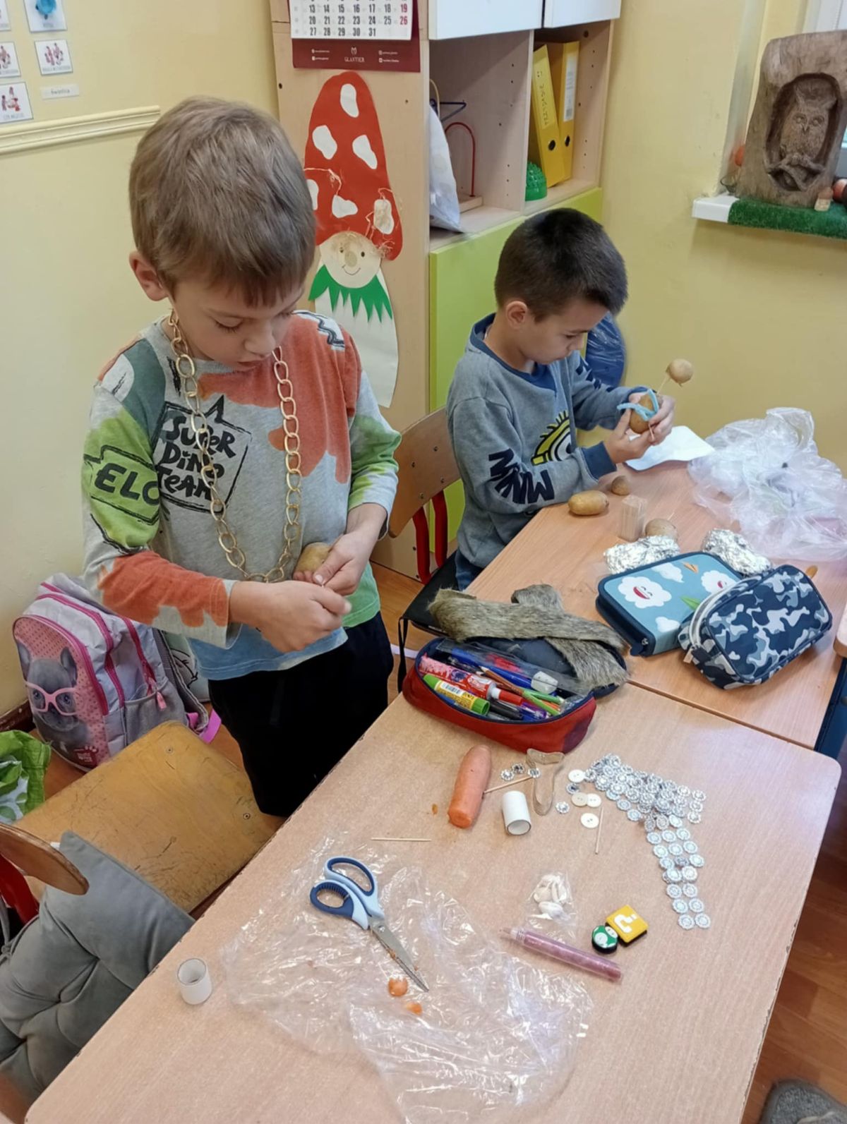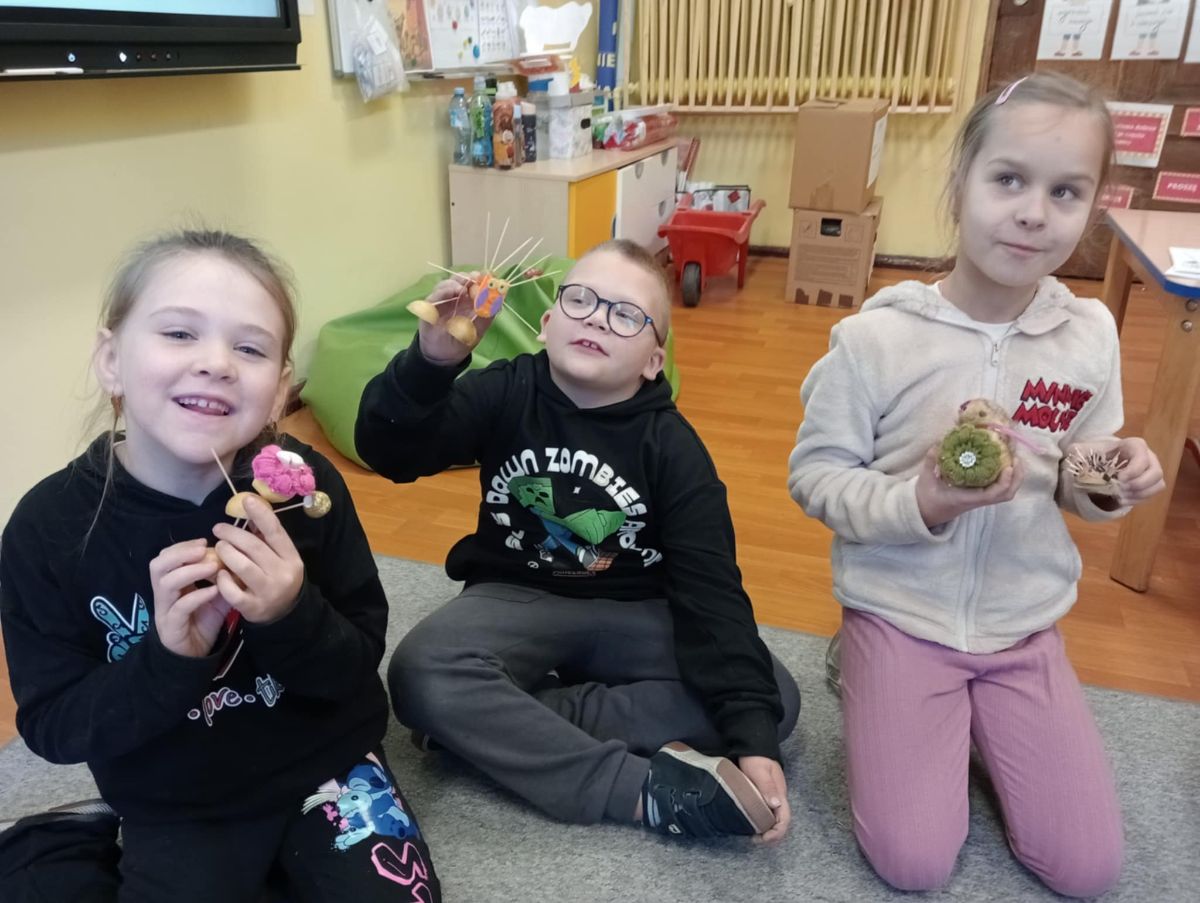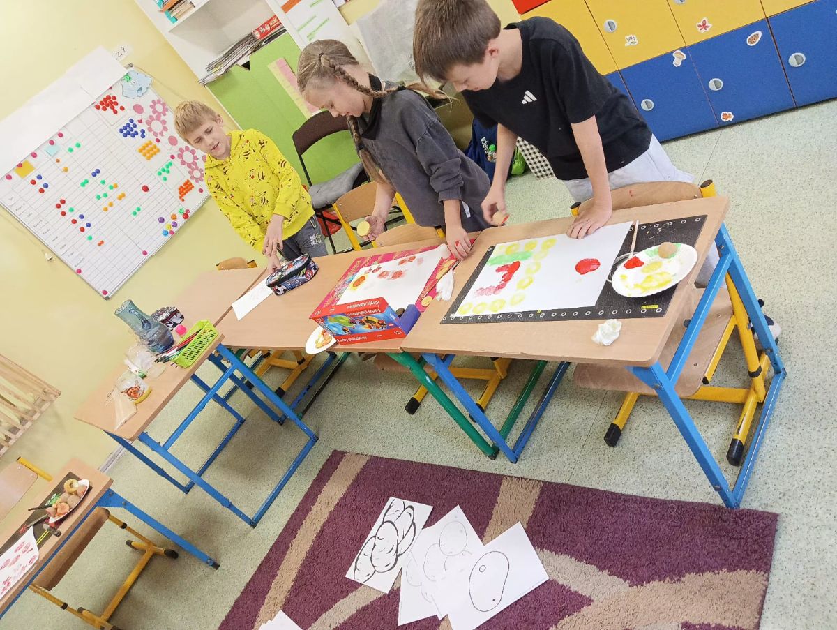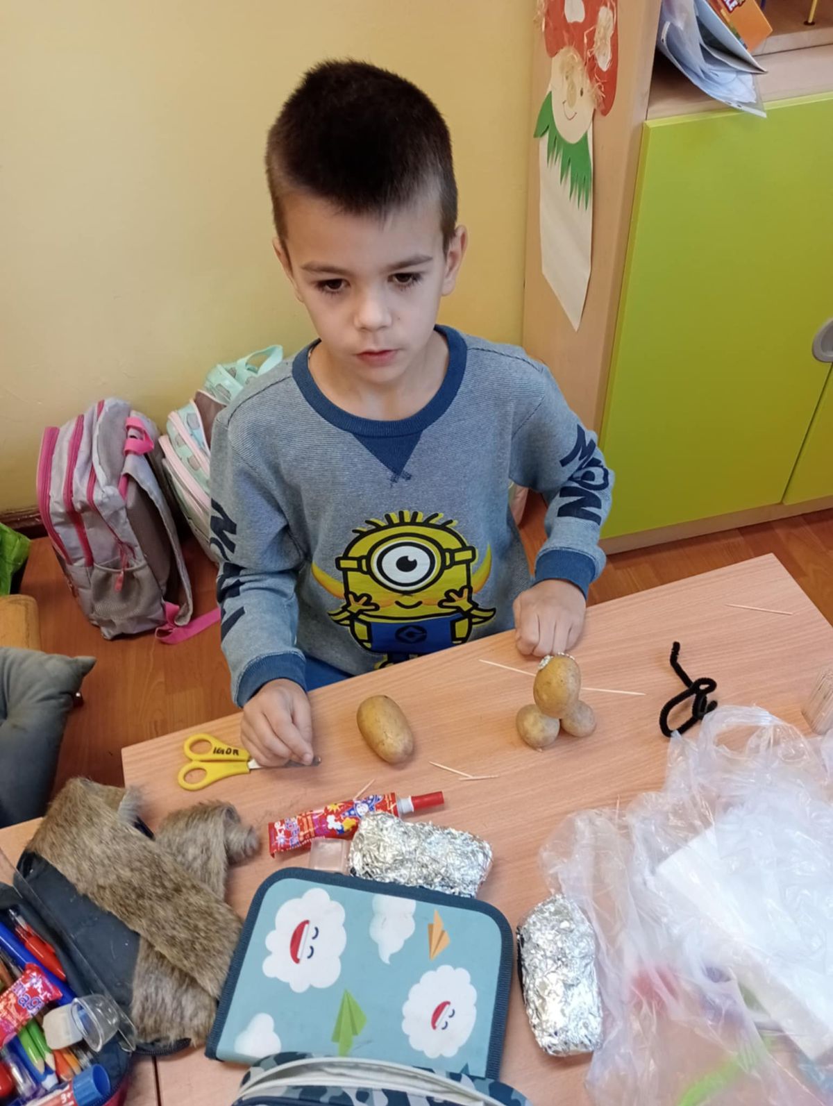 Klasy 0-3 rozpoczęły podróż przez ziemniaczany świat od wysłuchania bajki o ziemniaku. Po zapoznaniu się z jej treścią wychowawczynie przeprowadziły ze swoimi uczniami dyskusje na temat opowiedzianej historii. Były one pełne mądrych wniosków, pokazały także, że przemycona w opowieści wiedza pozostała w głowach. Kolejnym etapem były prace plastyczne (kolorowanki, tworzenie ziemniaczanych stworów, pieczątek z ziemniaka) oraz ziemniaczane karty pracy.