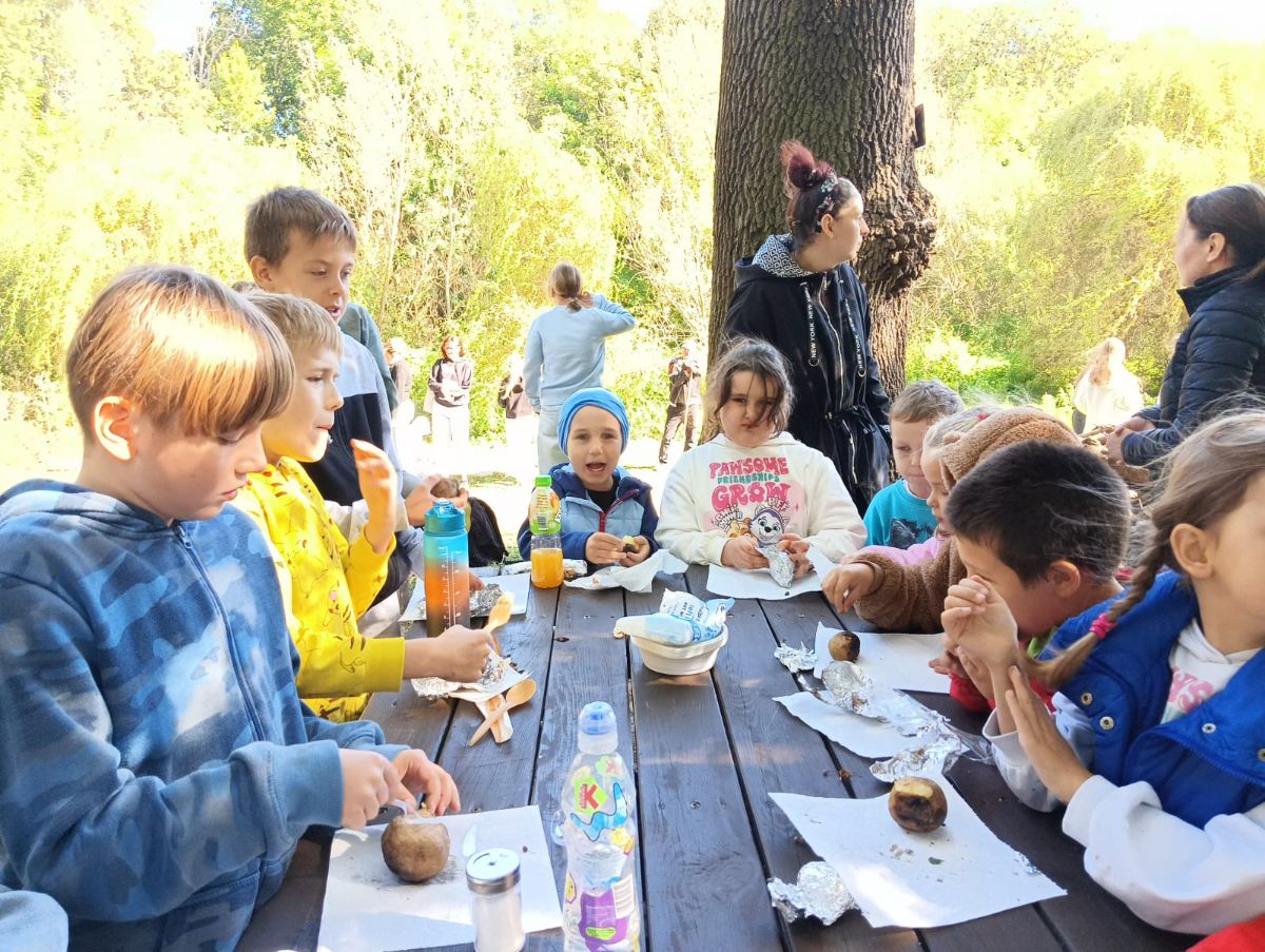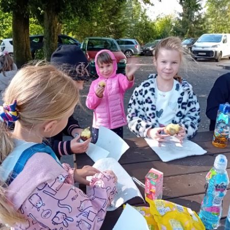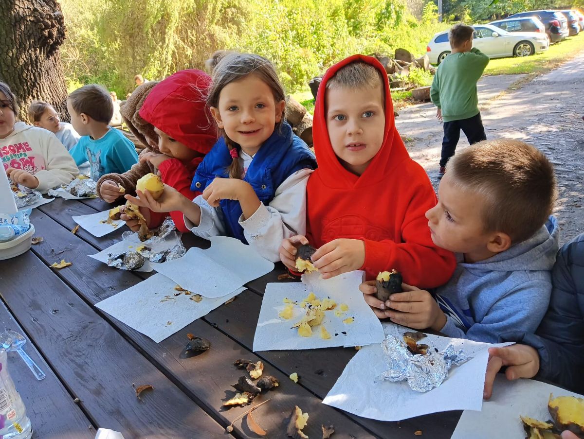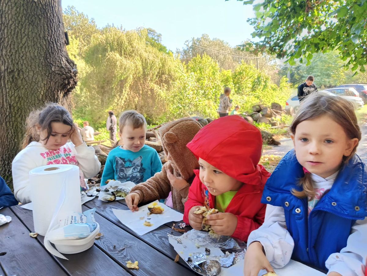 Po części edukacyjnej znalazł się czas na zasłużony posiłek - skosztowaliśmy ziemniaków upieczonych w ognisku.