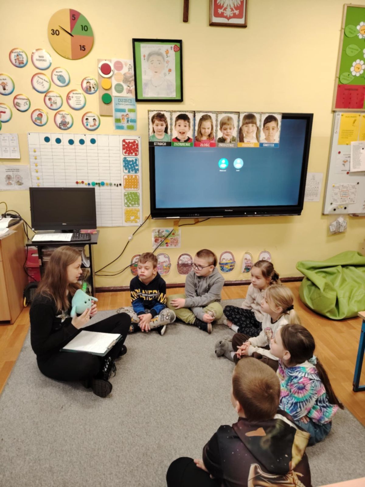 W ostatnich dniach Pani Justyna Krawczak przeprowadziła w klasie 1 i 2 niezwykle ważne zajęcia dotyczące emocji. Tym razem dzieci poznawały temat smutku, a motywem przewodnim była bajka „Łezka kropelka”.