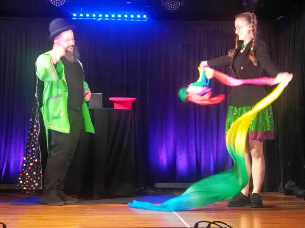 Podczas występu dzieci miały okazję przenieść się do świata iluzji i magii. Program pełen był zaskakujących atrakcji takich jak: niezwykłe triki i magiczne sztuczki, efektowny pokaz żonglerki ledowej, tajemnicze znikanie przedmiotów czy prezentacje iluzji, budzące podziw, ciekawość i niedowierzanie.
