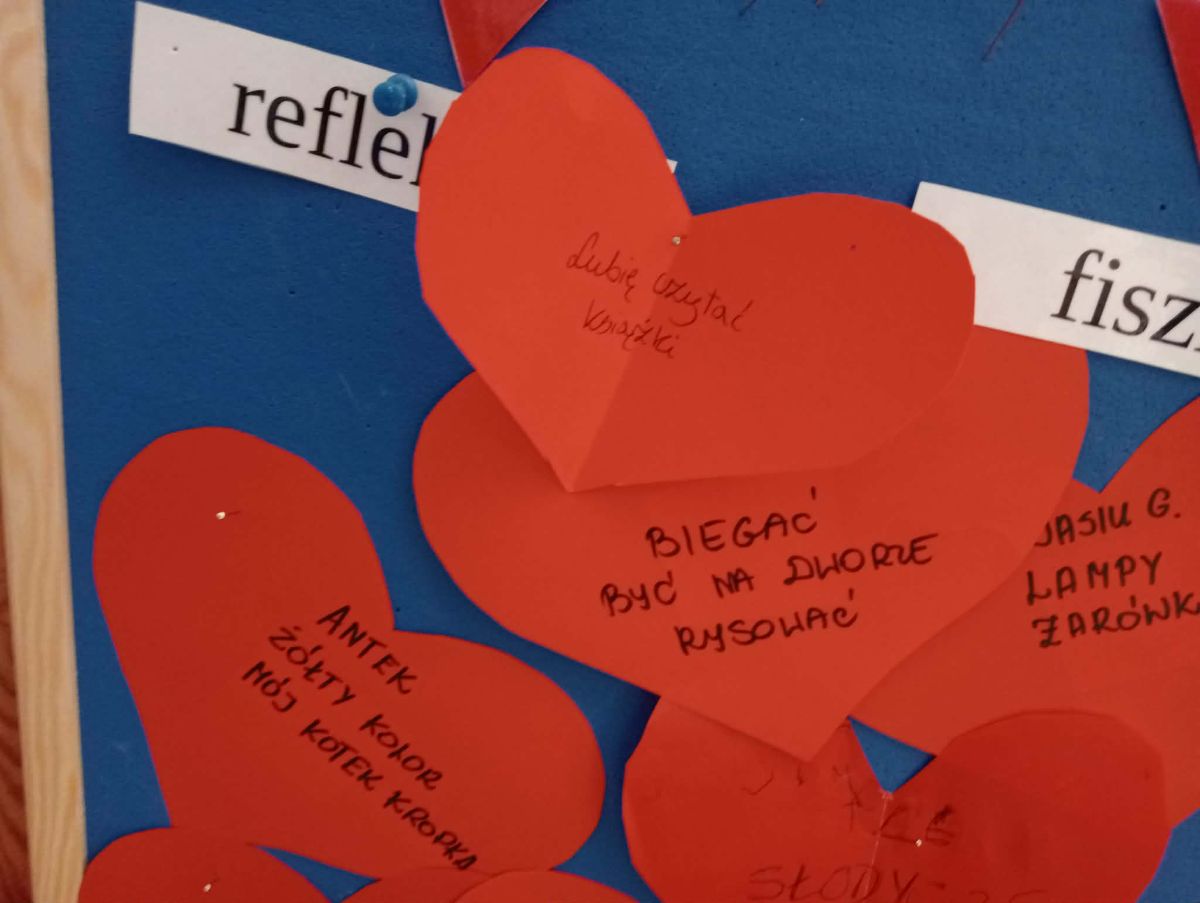 Dzień czerwony rozpoczął nasz tydzień. Uczniowie na serduszkach zapisywali to, co sprawia im