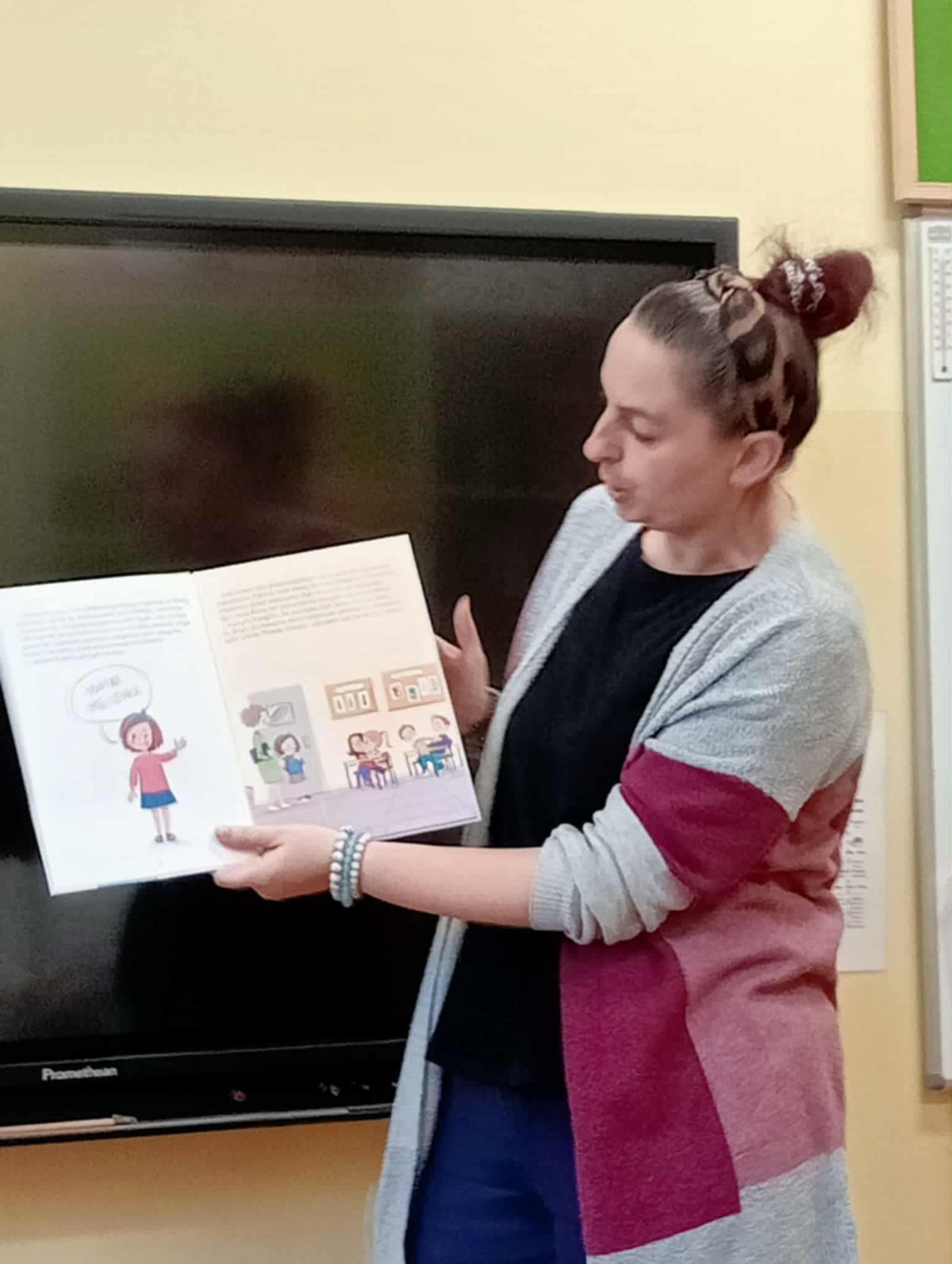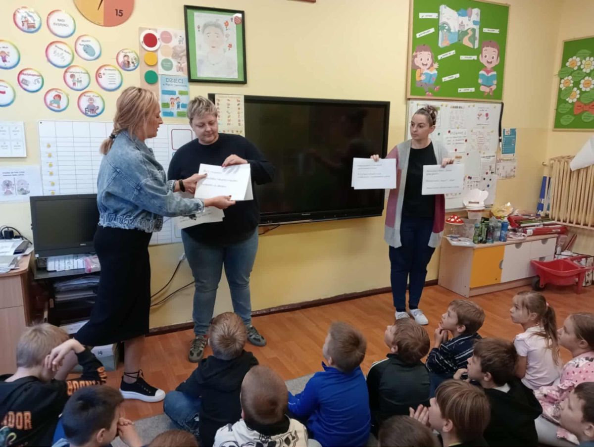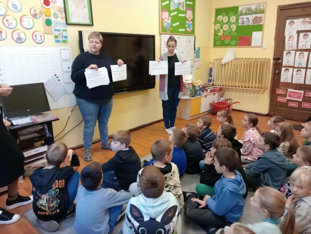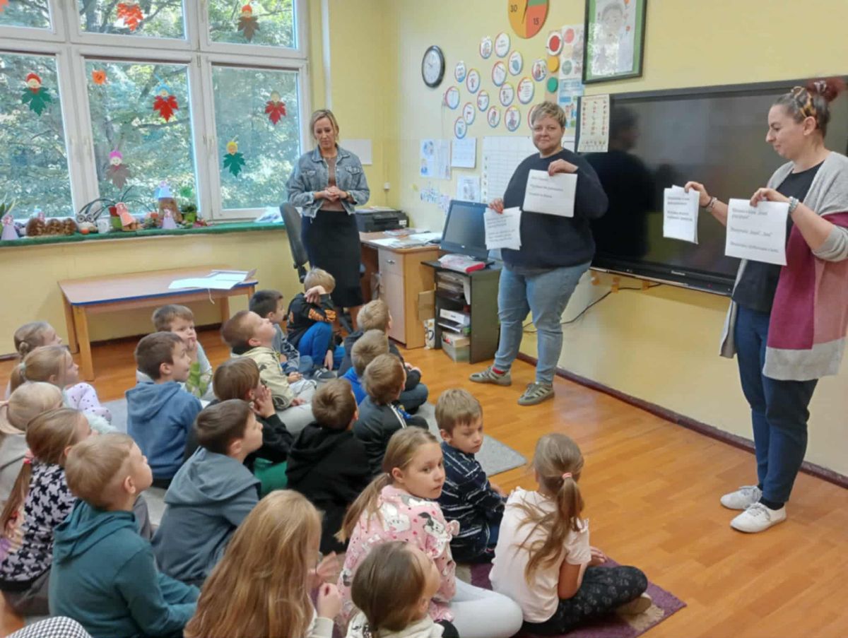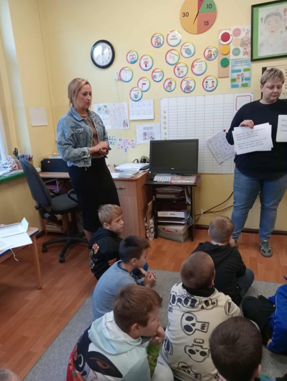 W klasach 1-3 zorganizowały zajęcia na temat przemocy rówieśniczej oraz przeprowadziły z uczniami rozmowę na temat opowiadania terapeutycznego pt. "Nie daj się gnębić! Książka, która dodaje siły".