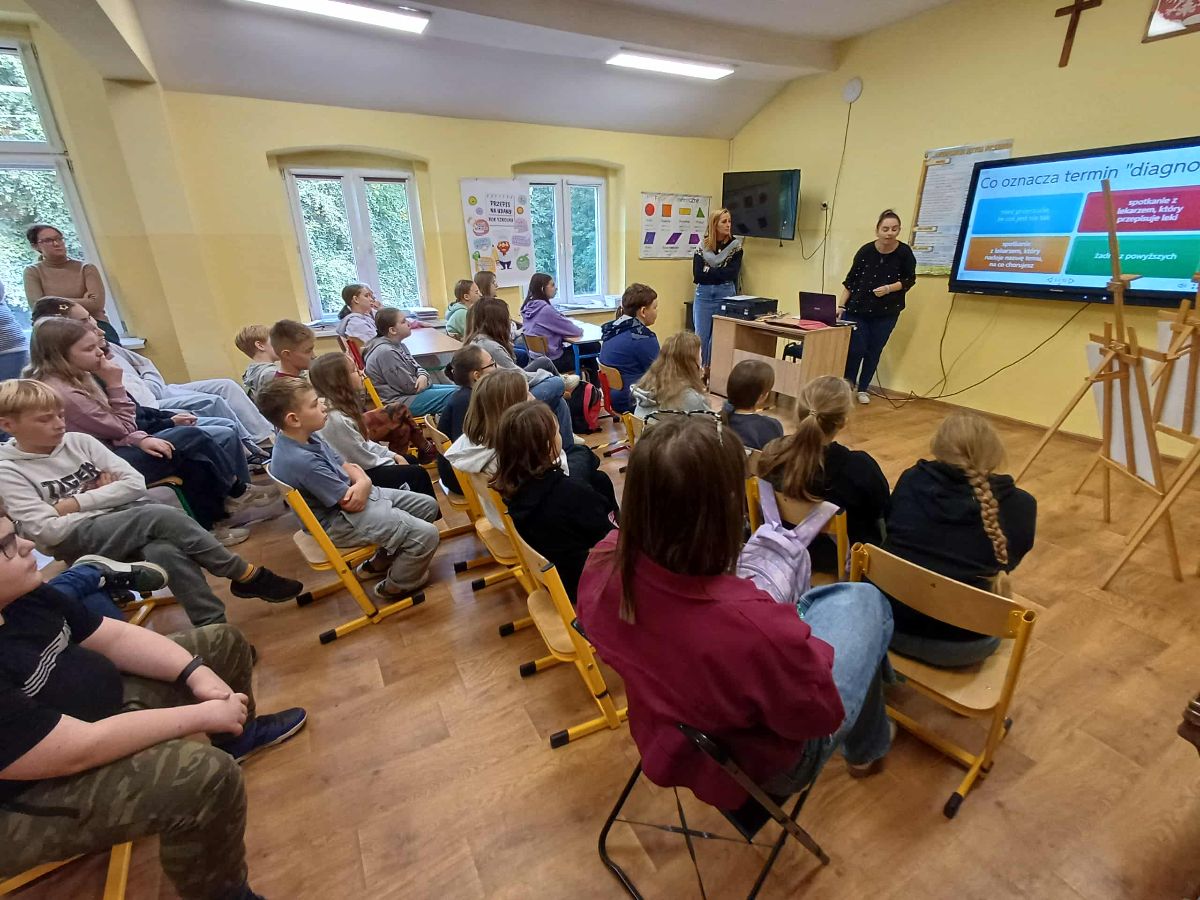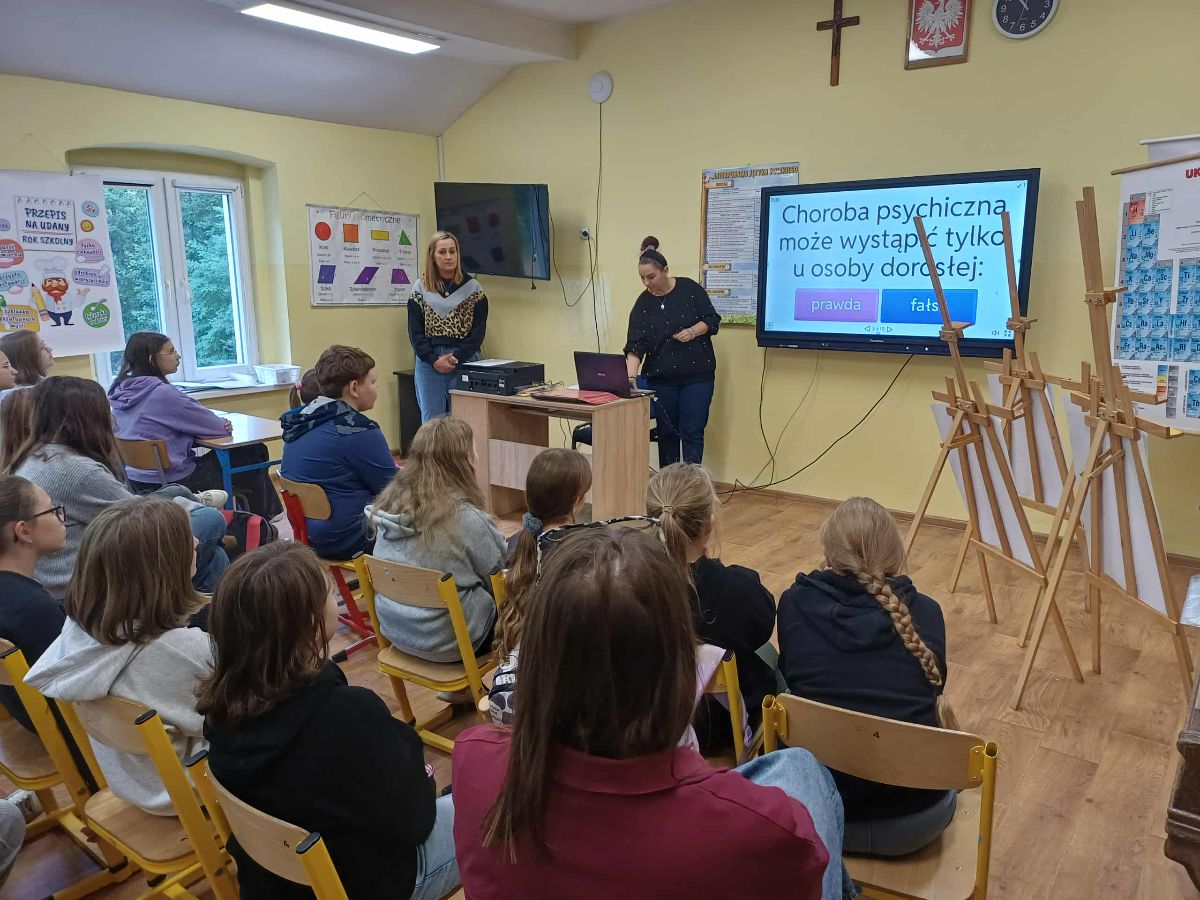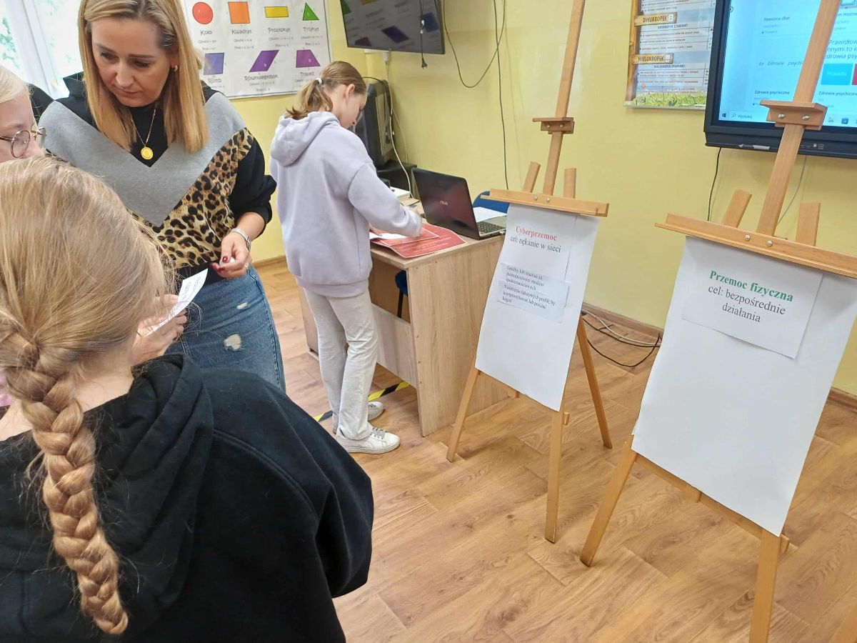 W naszej szkole p. Szczerba oraz p. Wilczyńska przygotowały warsztaty dla klas 4-8 na temat przemocy rówieśniczej oraz obchodzonego 10 października Dnia Zdrowia Psychicznego. Rozmawialiśmy o tym, czym jest zdrowie psychiczne, dlaczego warto rozmawiać o problemach oraz kto może pomóc nam w sytuacjach kryzysu psychicznego. Uczniowie dopasowywali przykłady sytuacji społecznych do rodzajów przemocy rówieśniczej. Poznali ścieżkę pomocy w sytuacji doświadczania lub bycia świadkiem przemocy.