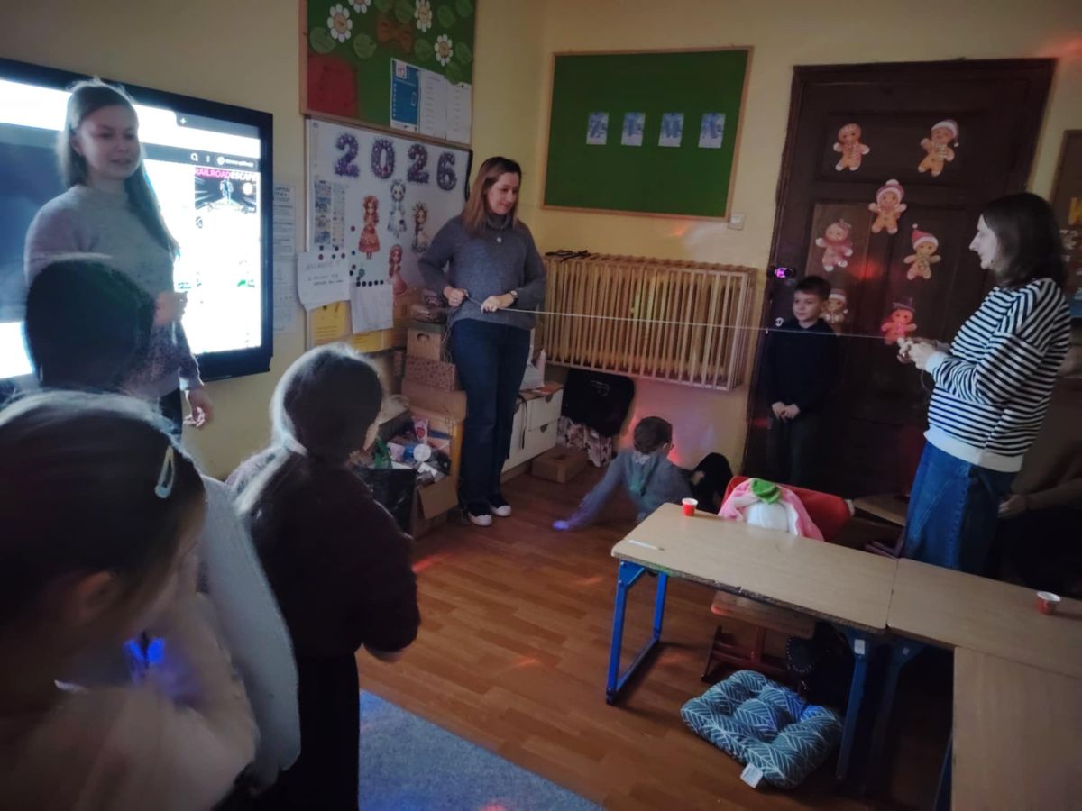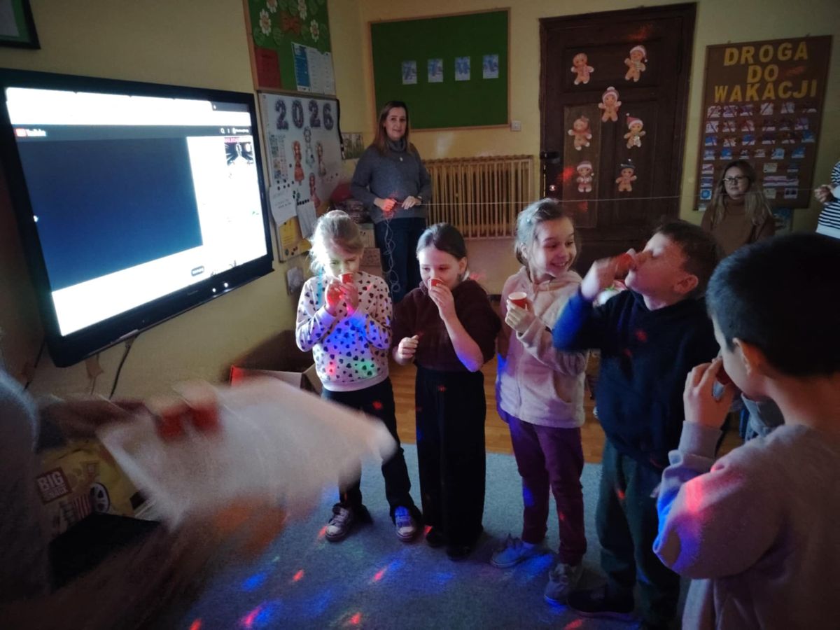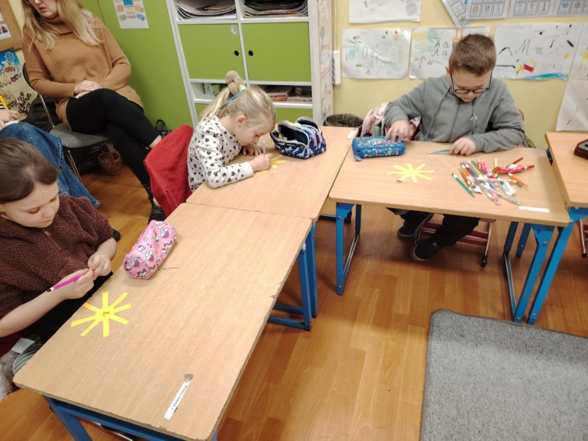 Na zakończenie ustawiliśmy się w kole, a pani Justyna puściła iskierkę radości, która wróciła do niej, niosąc ze sobą uśmiechy i dobrą energię.