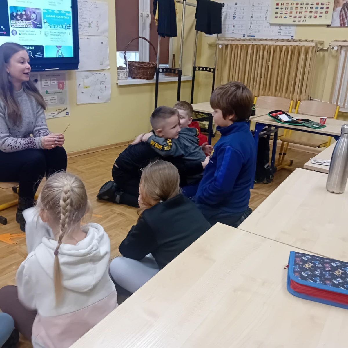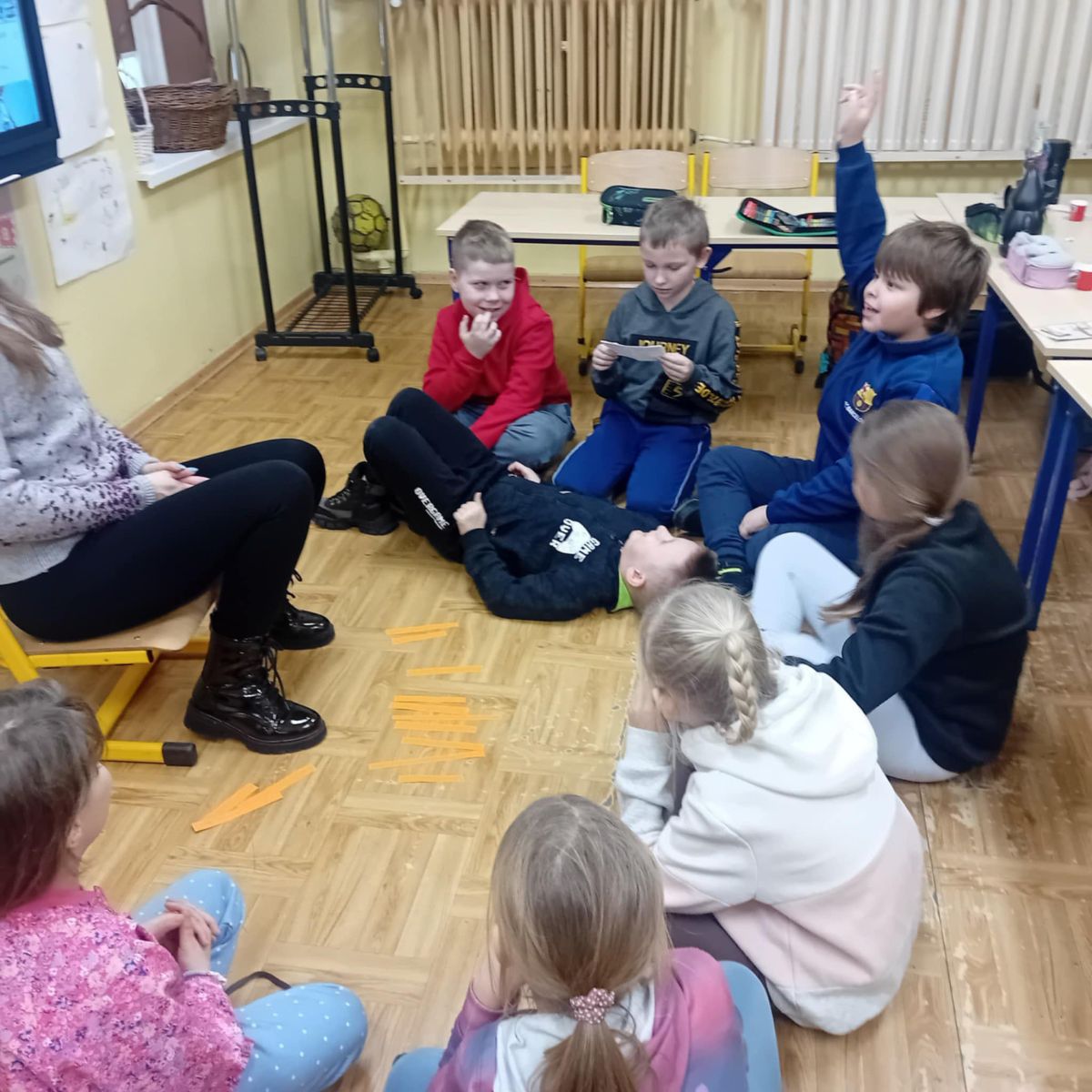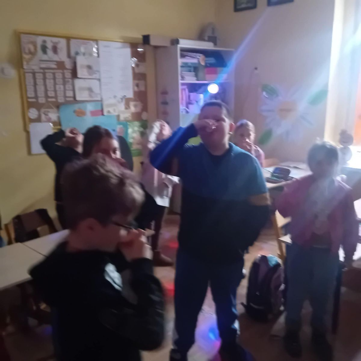 Na zakończenie ustawiliśmy się w kole, a pani Justyna puściła iskierkę radości, która wróciła do niej, niosąc ze sobą uśmiechy i dobrą energię.